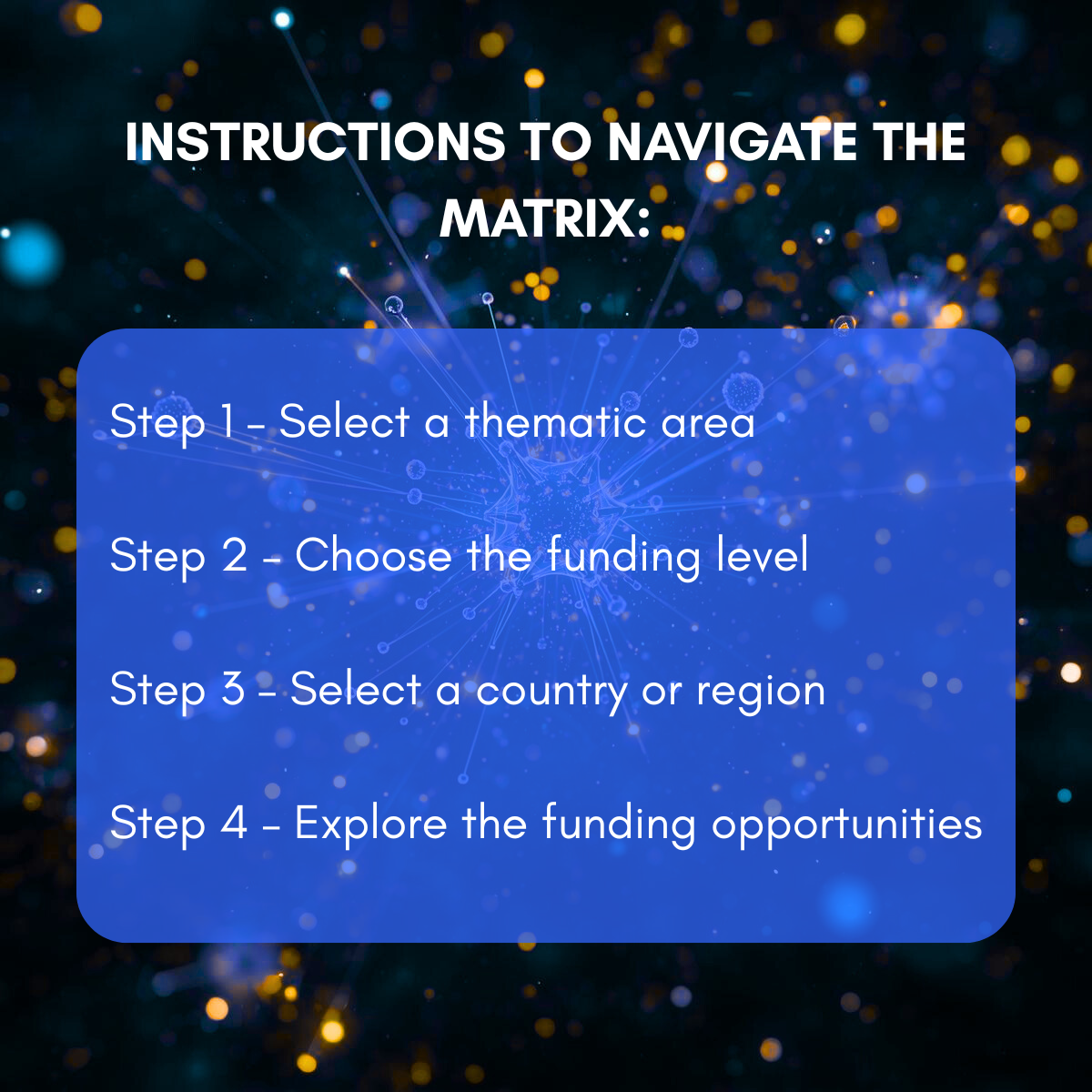 By combining thematic, programme-level and territorial filters, the Funding Matrix helps users: